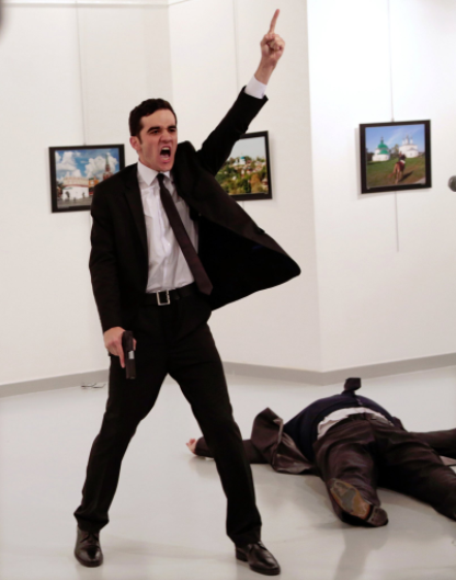 Lo scatto premiato è quello che ritrae il killer, il poliziotto Mevlut Mert Altintas, in piedi con la pistola nella mano destra puntata a terra e la sinistra alzata ad indicare il cielo. Il corpo dell’ambasciatore è a terra davanti a lui. Il presidente della giuria Stuart Franklim l’ha definita “una foto con un impatto incredibilmente forte“.