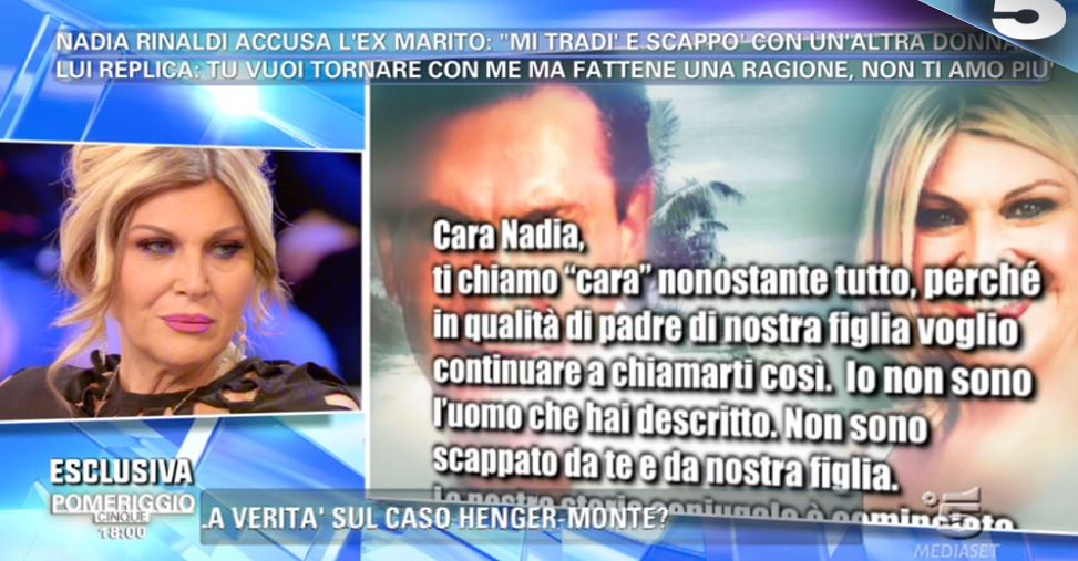 Il contenuto della lettera dell’ex marito indirizzata a Nadia Rinaldi: