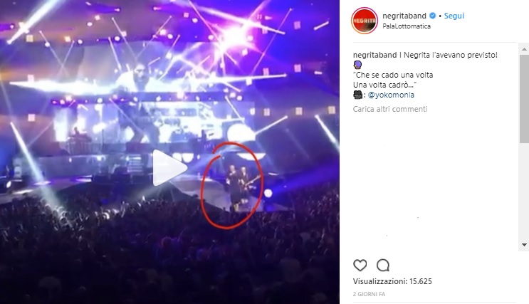 Momento di paura per il leader dei Negrita durante un concerto al Palalottomatica di Roma. Paolo Bruni, in arte Pau, è letteralmente volato giù dal palco. La band ha rischiato di dover annullare il concerto al Forum di Assago ma si è esibita lo stesso. Sui social, i Negrita hanno condiviso il video dell’incidente.