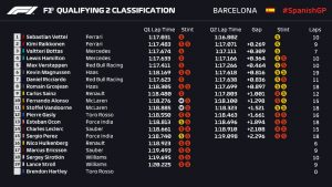 In Catalogna, sono le 15. Può partire la Q1. Sembra pronta la Ferrari, soprattutto a sferrare una valida controffensiva da opporre all’ottima (che è quasi riduttivo) prova della Mercedes alle libere. A Maranello, vogliono la quarta pole dopo quelle centrate in Bahrain, Cina e Azerbaijan. Sembra pronta anche la Mercedes, con un Hamilton-fulmine che ha bruciato l’asfalto di Montmelò, regalando spettacolo – si diceva – alle libere. Ad ogni modo, cala la bandiera verde. Kimi vola: 2 minuti dopo la partenza, è già primo e ha raggiunto l’incredibile crono di 1’17″483. Dietro di lui, Hamilton, Bottas e il mitico Seb. Tutti in hypersoft. Pochi minuti dopo, Vettel supera il compagno del Cavallino e sfiora (quasi) il muro dell’1’16. Ha un crono fenomenale. Velocissimo anche Verstappen, secondo alle 15:15. Ottimo il crono di Ricciardo che piantona Kimi. Problemi, invece, in casa Williams: Stroll va in testa coda e finisce fuori pista. Anche Hulkenberg non brilla. Il duello per il 14esimo contro Vandoorne non lo premia. Va fuori dai giochi. Bandiera a scacchi, è finita la Q1.