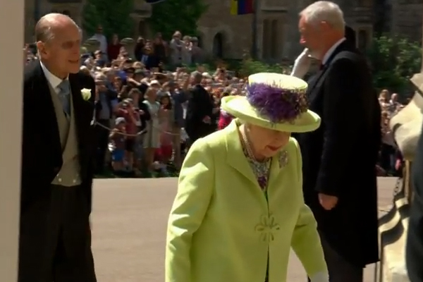 [update date=”19/05/2018″ time=”12:54″]In verde acido con un tocco di viola invece arriva la Regina Elisabetta. [/update]
