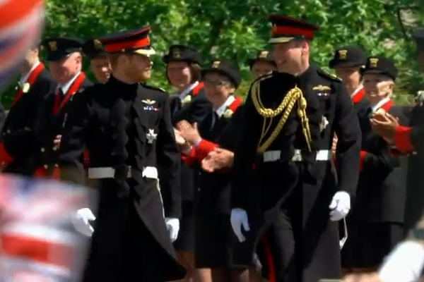 [update date=”19/05/2018″ time=”12:34″]Harry arriva a piedi accompagnato dal fratello William, entrambi in alta uniforme militare dei Blues and Royals, reggimento di cavalleria dell’esercito britannico di cui la regina è colonnello comandante.[/update]