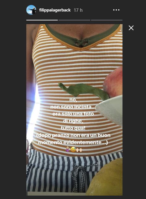 Una foto su Instagram con un pancino sospetto ha fatto viaggiare con la fantasia i follower della Largerback la quale, però, ha immediatamente smentito. L’immagine mostrava soltanto il ventre “un po’ gonfio”, ma coperto, della Lagerback che ha voluto fare chiarezza ripubblicando la foto nelle stories e spiegando il malinteso. “No, non sono incinta… era solo una foto di righe, tutto qua! (Dopo pranzo non era un buon momento evidentemente)”, intona sarcastica. E aggiunge poi: “Ok! Non metterò più le righe..!Dopo pranzo.”
