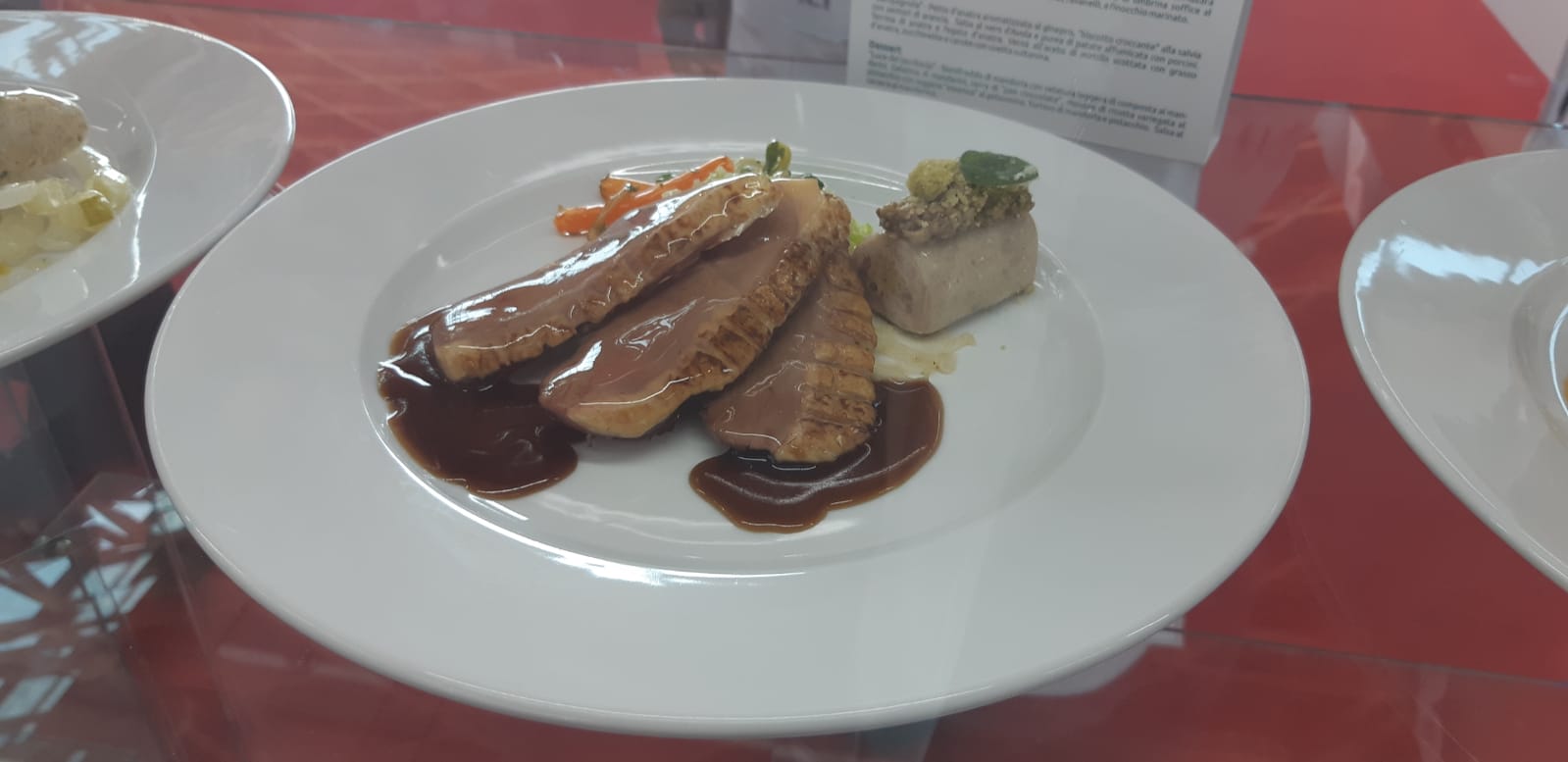 La medaglia è arrivata nella prova della cucina calda che prevede la preparazione in diretta di un menù per 45 persone composto da tre portate: Starter – Main course e Dessert. Nei giorni scorsi il menù vincente era stato anche presentato durante una serata a tema presso il ristorante “Balata” di via Roma 218. Il percorso gastronomico iniziava con la portata “Sentori”, un antipasto di pesce con ortaggi e verdurine, proseguiva con “Campagnola”, una “Diversificazione di anatra in cotture e consistenze” e terminava con “Luce del territorio”, Dessert fresco con frutti tipici del territorio.