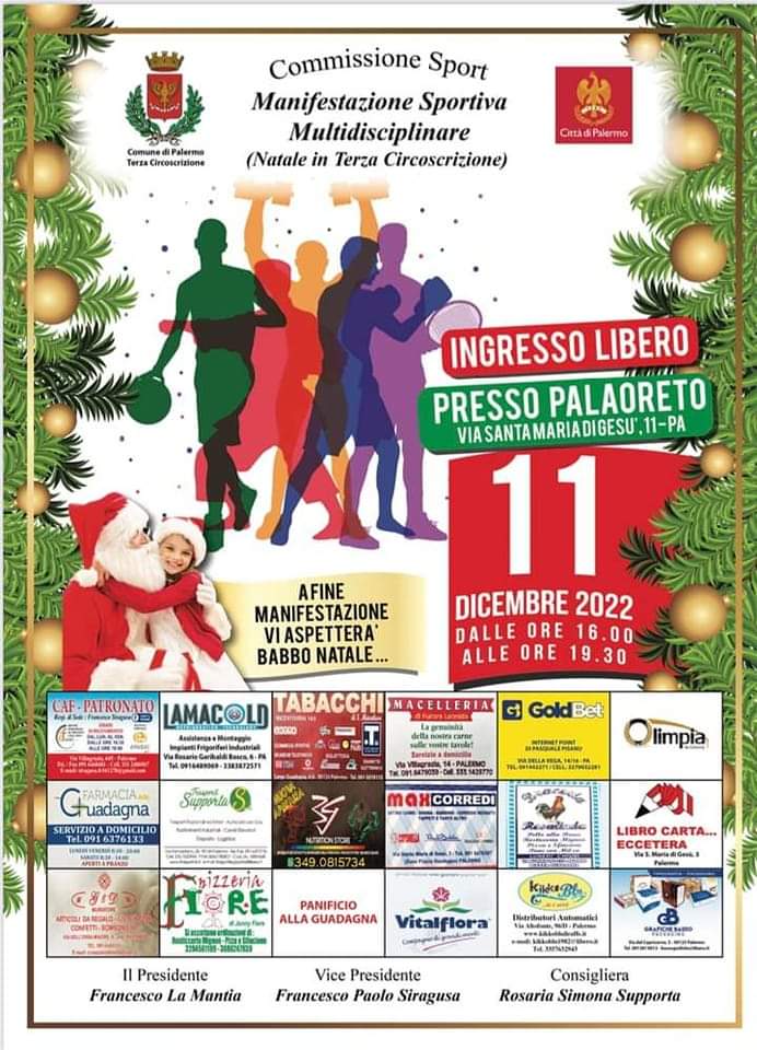 “Nonostante il pochissimo tempo, abbiamo lavorato duramente per fare il possibile affinché questa manifestazione sia un momento di aggregazione all’insegna dello sport, dello spirito del Natale, del divertimento ma soprattutto un momento di incontro per valorizzare i nostri atleti che si distinguono in tante categorie sportive non abbastanza conosciute”, afferma la commissione allo sport del comune di Palermo.