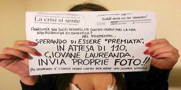 Una studentessa in attesa di laurearsi con un meritato 110 ha bisogno di un motorino. Andrà a lavorare in un locale la sera, penserete voi, e invece la futura dottoressa ha trovato un modo più semplice per guadagnare: vendere le sue foto osè su internet