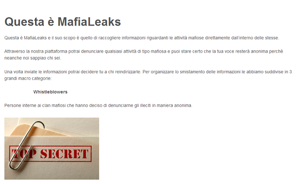 Un sito in cui, nel totale anonimato, poter svelare segreti e notizie di mafia: online dal 5 novembre Mafialeaks che non è certo un sito per omertosi