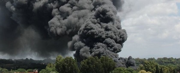 Le fiamme sarebbero scoppiate in un incendio in un deposito edile. Sul posto le volanti della polizia del commissariato Tor Carbone e quattro squadre dei vigili del fuoco