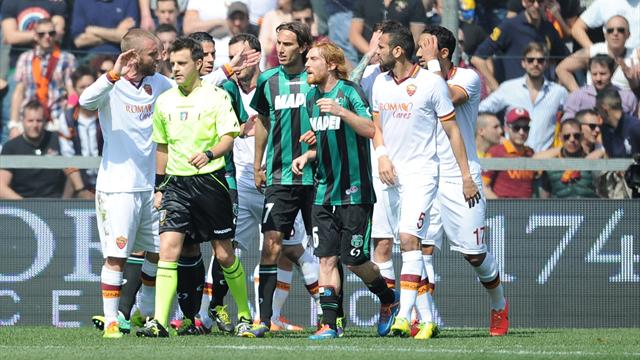 I padroni di casa in azione di contropiede avanzano con Sansone che entra in area dalla parte sinistra e finisce a terra dopo un contatto con Benatia. L'arbitro Rizzoli inizialmente sembra voler concedere il calcio di rigore ma dopo cinque minuti di conciliaboli e proteste torna indietro sui suoi passi