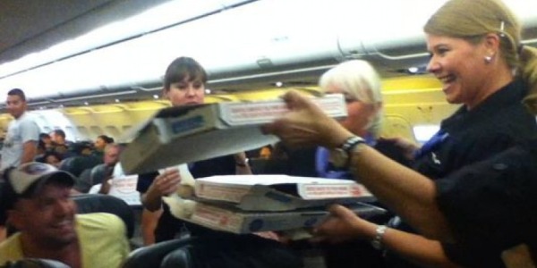 Il volo della Frontier Airlines diretto a Denver da Cheyenne subisce un ritardo a causa di una tempesta e il pilota, per alleviare l’attesa dei passeggeri, ha ordinato e pagato di tasca sua cinquanta pizza, sufficienti a sfamare tutte le persone a bordo