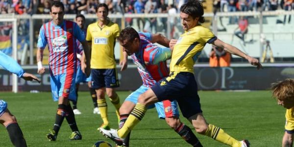 Il Catania perde la sfida per non retrocedere contro il Chievo per 2-0. Una rete per tempo: la sblocca Thereau su rigore e la chiude Rigoni con un colpo di testa imparabile