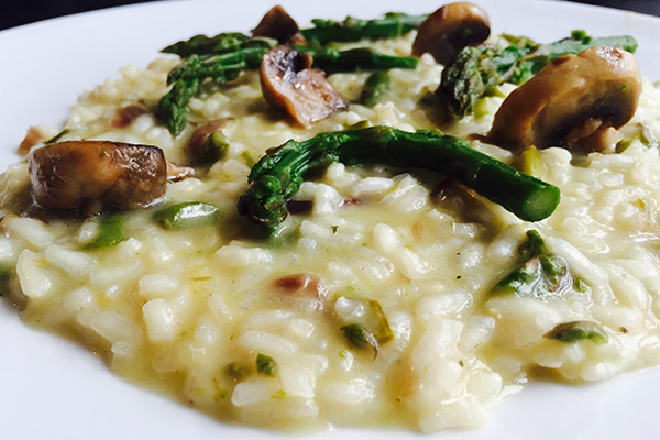 Risotto con funghi e asparagi selvatici
