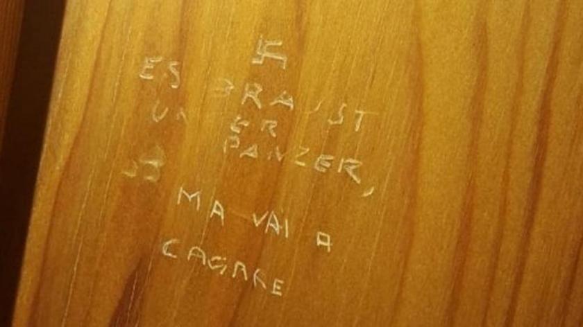 Il simbolo nazista è stato incisto chiaramente sul legno di una porta, dopo la scoperta e lo sgomento diffuso, sono stati avviati accertamenti