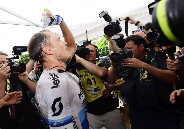 Il corridore riesce a tagliare il traguardo per primo precedendo gli altri tre compagni di una fuga nella quale gli azzurri erano stati in grado di piazzare due uomini
