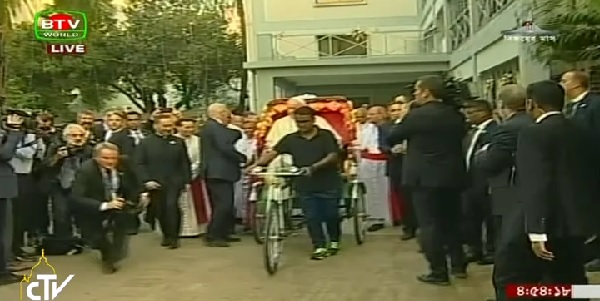 "È necessario che la comunità internazionale attui misure efficaci nei confronti di questa grave crisi", ha detto nel suo primo discorso in Bangladesh, nel palazzo presidenziale Bangabhapan