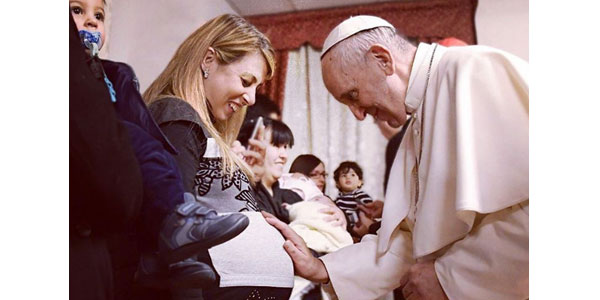 Dopo un pomeriggio movimentato dai manifesti anti-pontefice (poi rimossi), Francesco lancia il proprio appello in difesa della vita