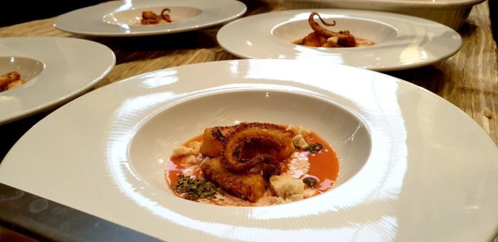 Biuso ha preparato due piatti ispirati alla tradizione siciliana: il polpo all’eoliana e lo sfincione in una versione molto particolare