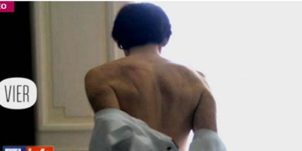 Un fermo immagine che mostra la schiena nuda di Elio di Rupo, 62enne premier belga, mentre si toglie la camicia