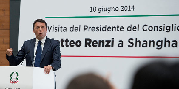 Renzi incontra i membri della business community della metropoli riuniti allo Shanghai Italian Center, il padiglione italiano dell’Expo di Shanghai del 2010, alla presenza delle autorità italiane in Cina, tra cui l’ambasciatore, Alberto Bradanini