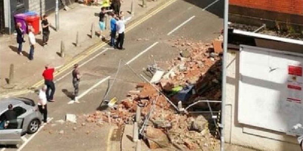 La persona rimasta ferita sarebbe stata investita da una macchina che ha sterzato bruscamente per evitare di essere investita dalle macerie del muro di una palazzina pericolante crollato in strada