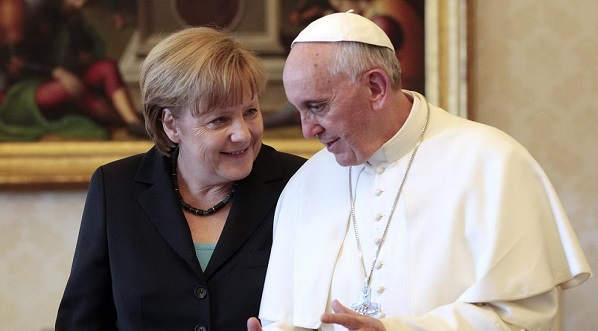Francesco ha parlato in italiano, la cancelliera in tedesco. Allo scambio dei doni la signora Merkel ha consegnato al Pontefice un cd di Bach e una busta con una donazione per i bambini dei rifugiati