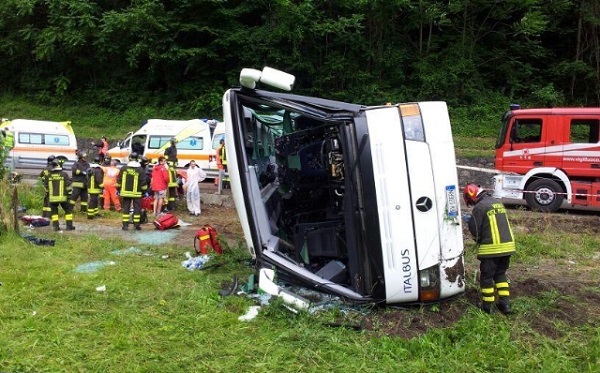 Sul mezzo viaggiavano tre società sportive di nuoto. Tra i feriti più gravi, una ragazzina che si trova ancora ricoverata all'ospedale di Feltre in rianimazione, dopo un delicato intervento subito alla milza