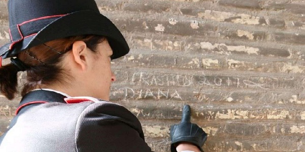 Quando è stato notato il turista dell'Ecuador di 55 anni aveva appena inciso su uno dei pilastri con una moneta da un euro le scritte 'Rachid 2017' e 'Diana', nomi della moglie e della figlia