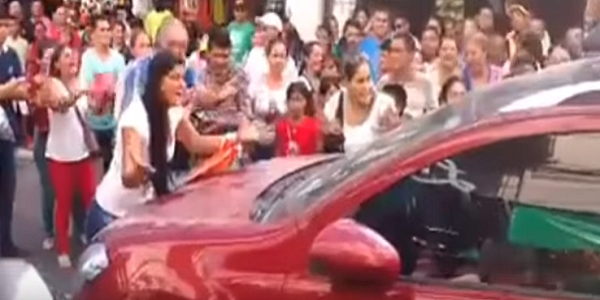 Soltanto l'intervento della polizia ha potuto trarre in salvo i due intrappolati nella vettura, dopo alcuni attimi di panico