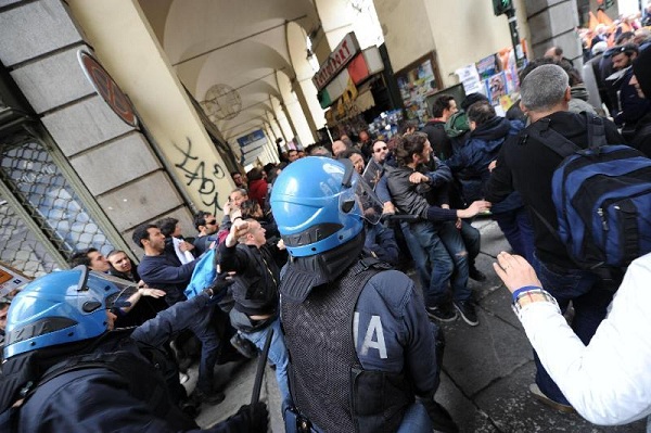 Tensioni e scontri al corteo del Primo Maggio a Torino tra antagonisti, No Tav e forze dell'ordine. Prima in piazza Vittorio Veneto, poi nella centrale via Roma. A far scattare la scintilla, l'arrivo al corteo del senatore Stefano Esposito, noto per le sue posizioni a favore della Tav