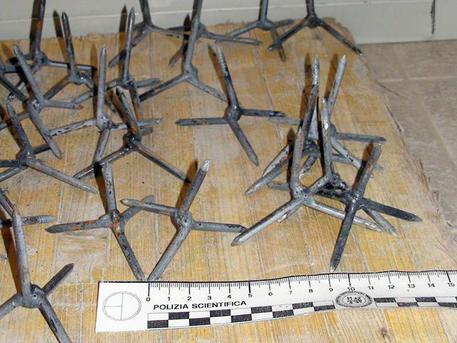 Sequestrati residui di petardi e altro materiale vicino alle recinzioni del cantiere di Chiomonte, sui sentieri e su una strada asfaltata vicina chiodi a quattro punte