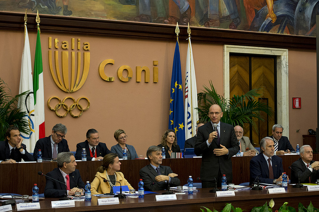 Letta nel suo intervento al Consiglio nazionale del Coni interviene e dopo una parentesi sulle prospettive di ripresa economica del Paese, il premier, parla di sport e dei valori che non devono ami essere traditi. Duro il commento del primo ministro in merito ai fatti in occasione del derby Nocerina-Salernitana: "Abbiamo assistito a fatti gravissimi, nei confronti dei quali serve la tolleranza zero"