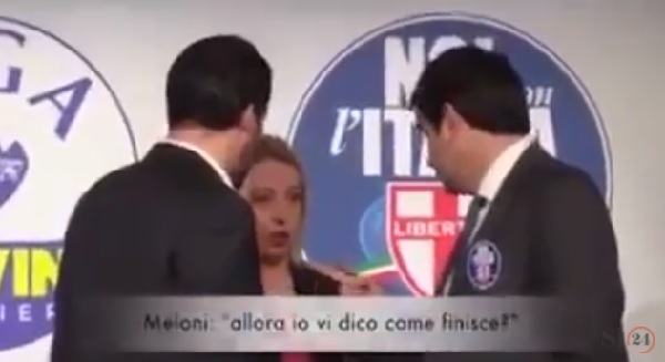 Non si sono accorti che i microfoni sul palco erano aperti e si sono messi a parlare fra loro. I tre parlavano della crescita del Movimento 5 Stelle al Sud e Meloni ha profettizzato come Salvini il più votato del centrodestra