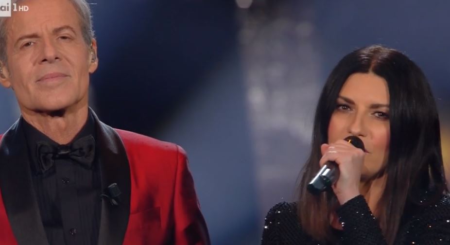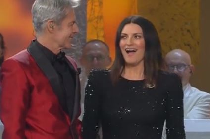 Momento altissimo quello dell'esibizione di Gianna Nannini, rockettara in total white e scarpe da tennis, e Claudio Baglioni