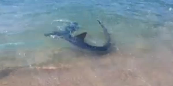 Un turista ha ripreso la scena. In sottofondo si sentono le urla delle madri che dicono ai figli di uscire dall'acqua mentre lui, intrepido, si fa avanti e distrae lo squalo