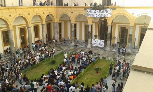 Protestano gli studenti dopo la decisione presa ieri dal consiglio di corso di studi di sopprimere l'appello di novembre destinato a fuori corso e part time