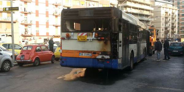 L'autobus si è fermato in piazza Generale Cascino e sono intervenute due squadre dei vigili del fuoco per spegnere l'incendio