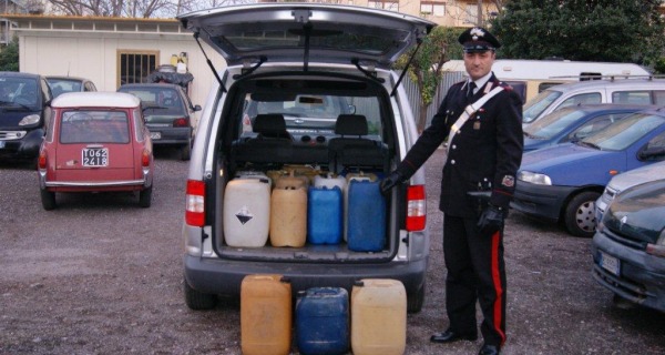 I militari nel corso di un controllo hanno trovato decine di bidoni pieni di carburante. Il giudice ha disposto la misura cautelare dell'obbligo di presentarsi all'autorità giudiziaria