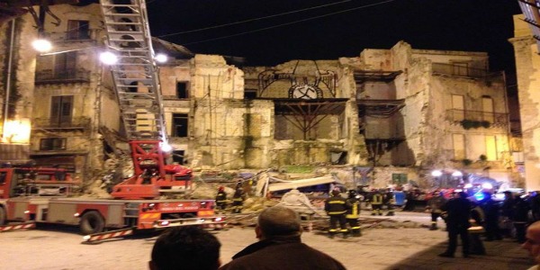 Una palazzina di tre piani è crollata su se stessa in Piazza Garrafello alla Vucciria. Non si sono registrate vittime. Un ambulante che si trovava nella zona è riuscito a mettersi in salvo
