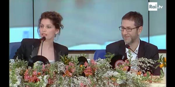 La conduttrice ha ospitato a Domenica Live Paolo Genovese, l’insegnante di musica della scuola Raiti finita al centro di un polverone dopo la canzone cantata dai bambini durante la visita del premier