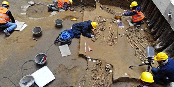 Una posizione che indicherebbe una sepoltura affrontata di fretta, con la necessità di ottimizzare gli spazi, molto probabilmente a causa dei una epidemia di peste che si stava diffondendo