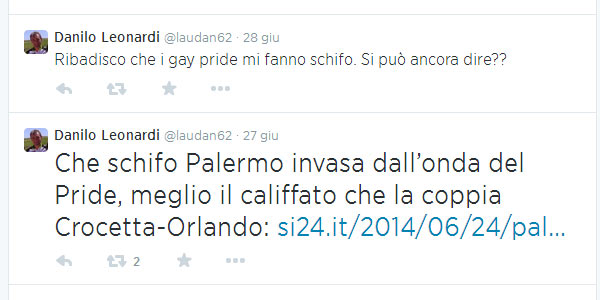 "I gay pride mi fanno schifo"; "Che schifo Palermo invasa dall’onda del Pride". Sono questi alcuni dei tweet di Danilo Leonardi, dipendente Rai, che hanno sollevato un vero e proprio polverone mediatico
