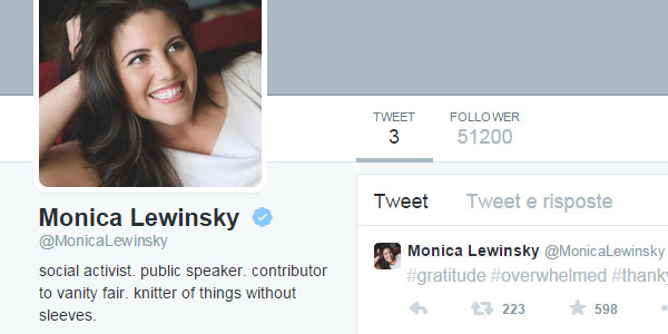 Le è bastato scrivere solo tre tweet per arrivare a più di 50 mila follower in meno di un giorno (oltre ad aver ottenuto, a tempo di record, l'account verificato da Twitter). E aumentano di minuto in minuto