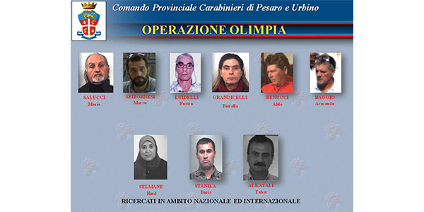 Nove ordinanze di custodia cautelare in carcere, emesse dal gip di Pesaro, sono state notificate dai carabinieri in varie località italiane nell'ambito dell'operazione denominata "Olimpia" su una serie di furti di maxi yacht