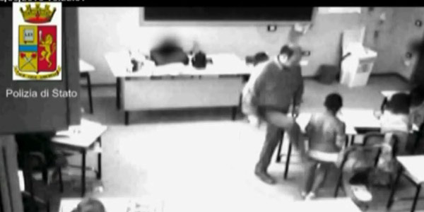 L'uomo, che era stato in passato già denunciato da un genitore per lesioni colpose ai danni del figlio, è stato colto in flagrante dalle telecamere nascoste poste dalla polizia nell'aula della scuola in cui lavorava