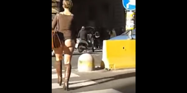 Diversi sono i filmati, da più angolazioni, che sono stati postati sui social network. E la donna pare anche gradire l'attenzione dei passanti muniti di smartphone