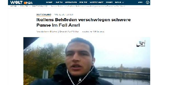 il quotidiano cita fonti anonime dell'Intelligence Amri scelto dai servizi segreti come infiltrato |L’accusa all’Italia è sul giornale tedesco Die Welt