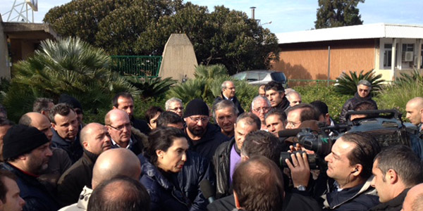 I lavoratori della società di Finmeccanica hanno portato la protesta a Palermo, chiedendo di parlare col presidente Crocetta. Il deputato regionale dei democratici ha provato a rassicurarli