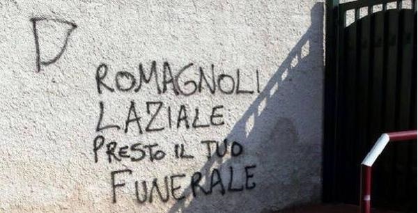 Tra le scritte, apparse sui muri sotto casa dei genitori, anche un vergognoso "Romagnoli come Zanardi"