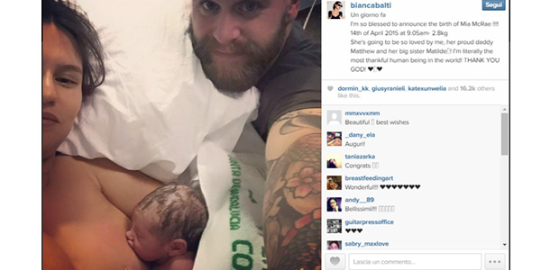 Bianca Balti è di nuovo mamma: la top model ha dato alla luce la piccola Mia il 14 aprile alle 9.05 e ha annunciato il lieto evento postando sui social uno scatto che la ritrae con la sua secondogenita e con il padre della bambina, Matthew McRae, finora tenuto nascosto dai riflettori