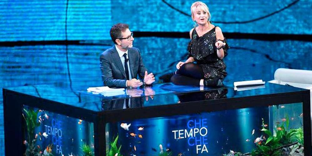 Luciana Littizzetto a "Che tempo che fa" parla dalla scrivania di Fabio Fazio delle principali notizie della settimana, specie quelle che lei definisce "balenghe"